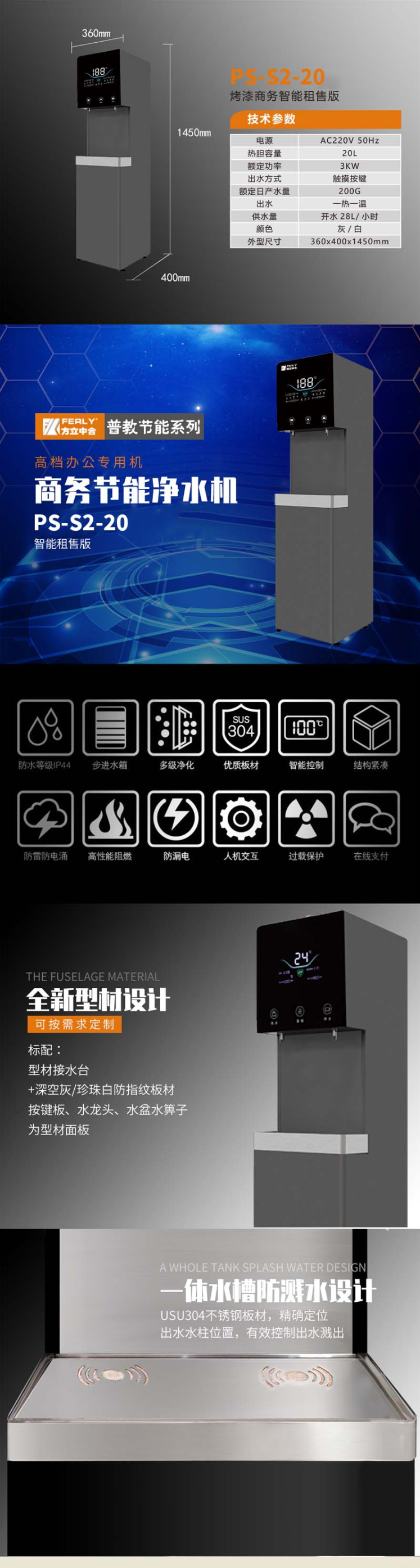 安吉尔J2710-ROS63C步进式电开水器及其配套净水装置 商务净水机
